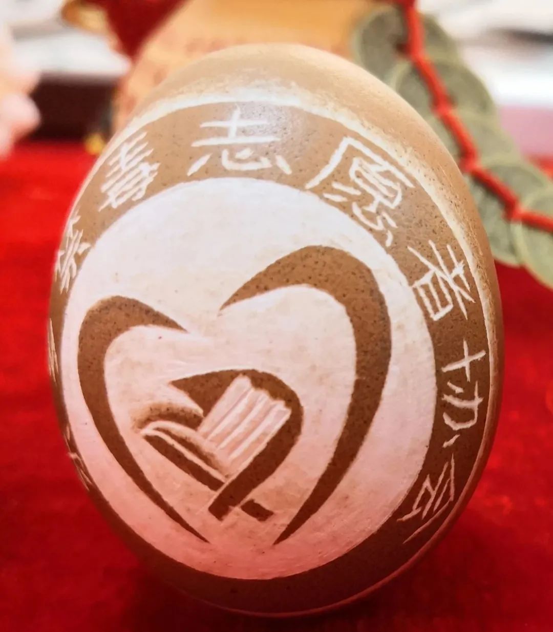 “还有这些精雕细琢的‘禁毒蛋’、葫芦和快板雕刻,都是我们禁毒志愿者的作品。”说起展品,闵晓辉侃侃而谈,“他们都心灵手巧,为了用人民群众喜闻乐见的方式宣传禁毒工作,志愿者们绞尽脑汁想办法。除了剪纸、雕刻外,还有书法、油画等。”